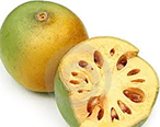 The bael fruit has a smooth, woody shell with a green, gray, or yellow peel. It has been described as tasting of marmalade and smelling of roses. Boning indicates that the flavor is sweet, aromatic and pleasant. The raw fruit is used for diarrhea, malabsorption and haemrrhoids.