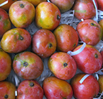 It is a somewhat round or pear-shaped seasonal fruit, and is light green, yellow, or maroon in color on the outside when it is ripe. Guava also has white or maroon flesh and lots of small hard seeds enveloped in very soft, sweet pulp. It is eaten raw (ripe or semi-ripe) or in the form of jams and jellies. It is one of the least chemically treated and sprayed fruits.