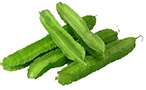 The bitter gourd (also known as bitter melon) looks like a cucumber but with ugly gourd-like bumps all over it. This vegetable is a melon that is bitter. Both varieties have seeds that are white when unripe and that turn red when they are ripe. The vegetable-fruit turn reddish-orange when ripe and becomes even more bitter.