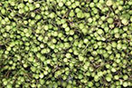 The fruits are berries that grow in clusters of tiny green spheres (1 cm in diameter) that look like green peas. They become yellow when fully ripe. They are thin-fleshed and contain numerous flat, round, brown seeds.