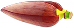 A large, purplish blossom that grows from the end of a bunch of bananas. The leaves enclose scented flowers. The outer leaves are much darker and tougher compared to the tender inner leaves which are used in cooking. It is treated as a vegetable in several tropical and Asian cuisines.