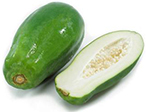 Unripe papayas are readily available in various sizes and shapes during the summer at markets. Select one that is very firm with shiny green peel suggesting that it is as freshly picked as possible. Any very firm unripe green papaya can be used for the recipe. Select the firmest one you can find. Even green fruits will eventually ripen and turn soft if allowed to sit around for some time.